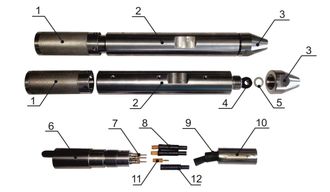 Наконечники кабельные бронированные маслозаполненные НКБМ 3-36 предназначены для механического и электрического соединения геофизического каротажного кабеля с армированной оболочкой и спускаемого в нефтяную, газовую или иную скважину оборудования. Каротажные наконечники данных марок отличаются от стандартных узлом крепления армирующего и внутреннего повивов.